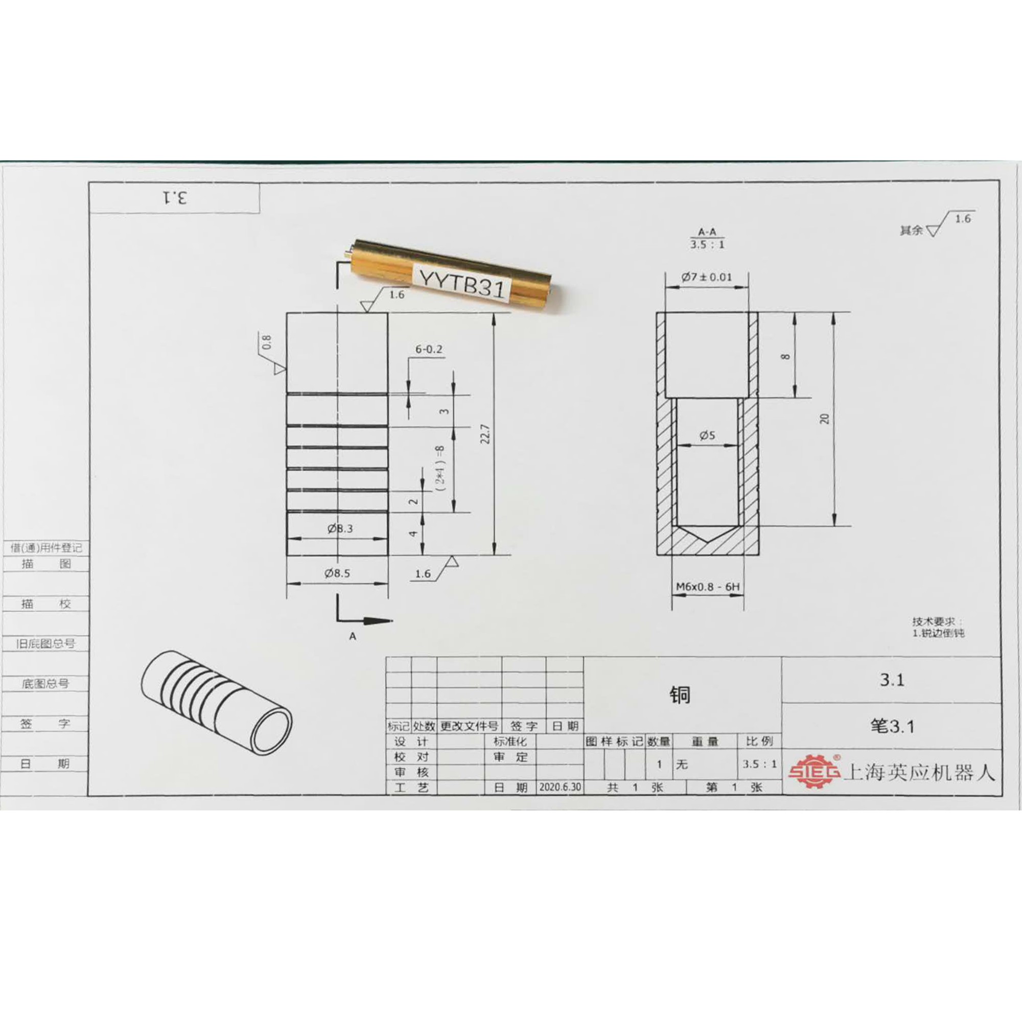 配套工具:外圓車刀、隔斷刀、定位鉆、2.5mm鉆頭、3mm鉆頭、6mm鉆頭、7.5mm鉆頭、M8細牙套死、M10細牙絲錐,滾花刀