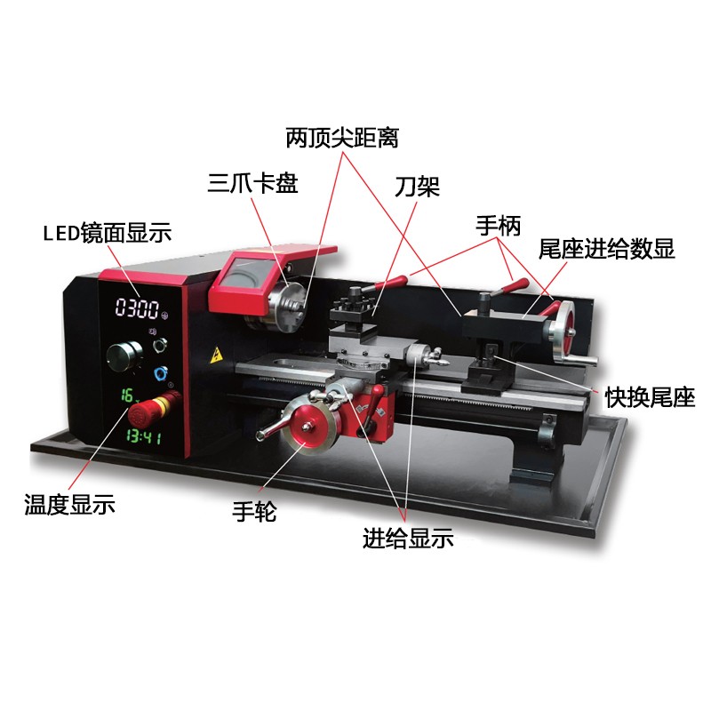 升級了機床外觀,增加了溫度顯示,床身300毫米。卡盤80毫米