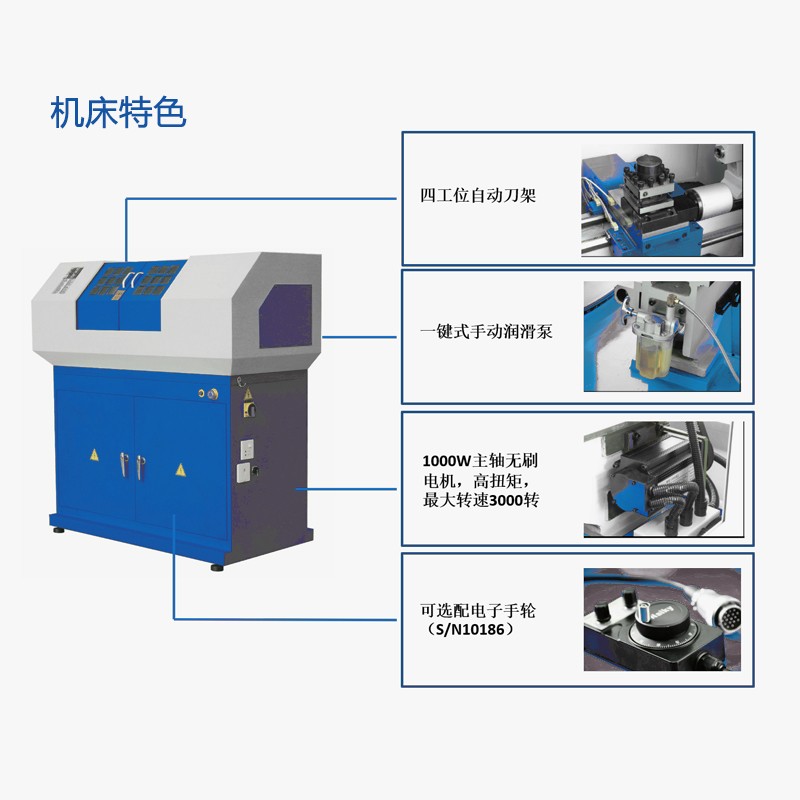 KC6作為經濟型的數控車床的范本,以極低的投資成本為客戶提供極高的產品產量,3000rpm的主軸轉速,高效率無刷主軸電機,鑄鐵結構,保證了剛性最大,車削精度最高,先進的數控軟件可在最短的時間內加工出高品質的零件,不僅可以加工圓柱表面,也可以鏜、開槽、切割等,由普通電腦控制,操作簡便,價格適中,數控系統可選SIEG、MACH或SIEMENS 802S高級控制器,是目前市場極具性價比的小型數控車床。